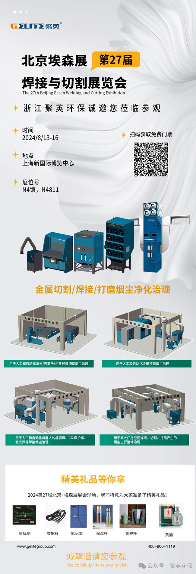 2024年8月13-16日,國際焊接行業盛會——第27屆北京·埃森焊接與切割展覽會將于上海新國際博覽中心盛大開幕。此次,在浙江聚英N4811展臺上,我們將為您帶來多款智能除塵設備,以及焊接煙塵治理行業的場景應用展示。